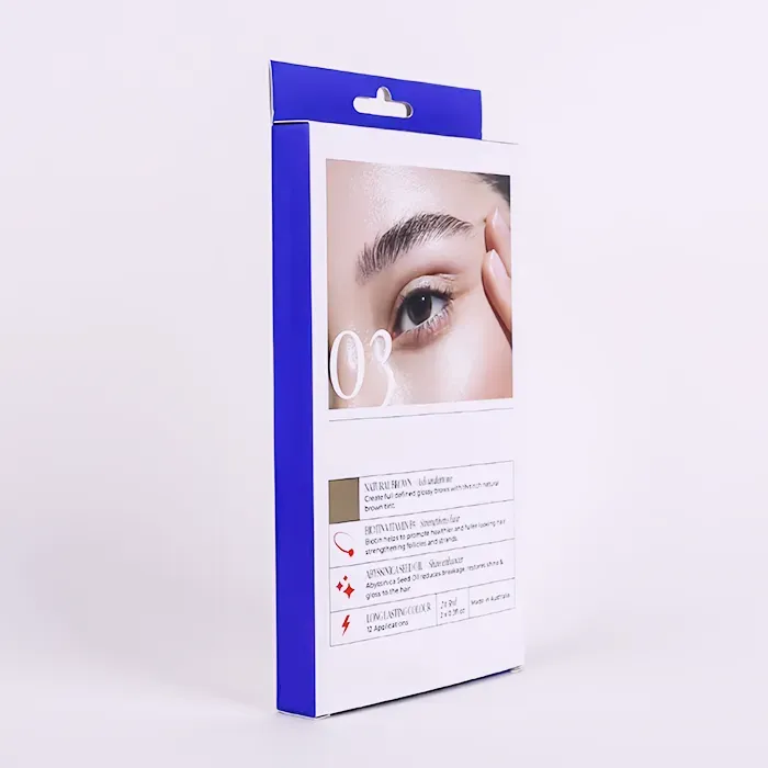According to the paper material, we used 300g Ivory Paper, which is effectively sturdy to protect the products from pressure or deformation. The Solid texture enhances the premium feel of these Boxes With Hang Tabs, giving the eyebrow tint pen sets a high-end appearance for sale. We choose eco-friendly FSC certificated Paper, meeting the palstic-free packaging idea of this cosemetic brand. We adopted the Pantone and CMYK printing, balancing affordability with precise brand Pantone color reproduction. The design of Hang Tab Retail Boxes demands high-level expertise from the printing team. Our Factory made it through the challenge successfully. Our advanced printing technology brought the skin textures in the images to stunning realism. Our brand customer are really satisfied with it and praised Doyoupacks as a leading and reliable packaging supplier for wholesale bulk orders of custom Hang Tab Boxes. In order to avoid the scratches and fingerprints, we applied matte Lamination to the packaging.